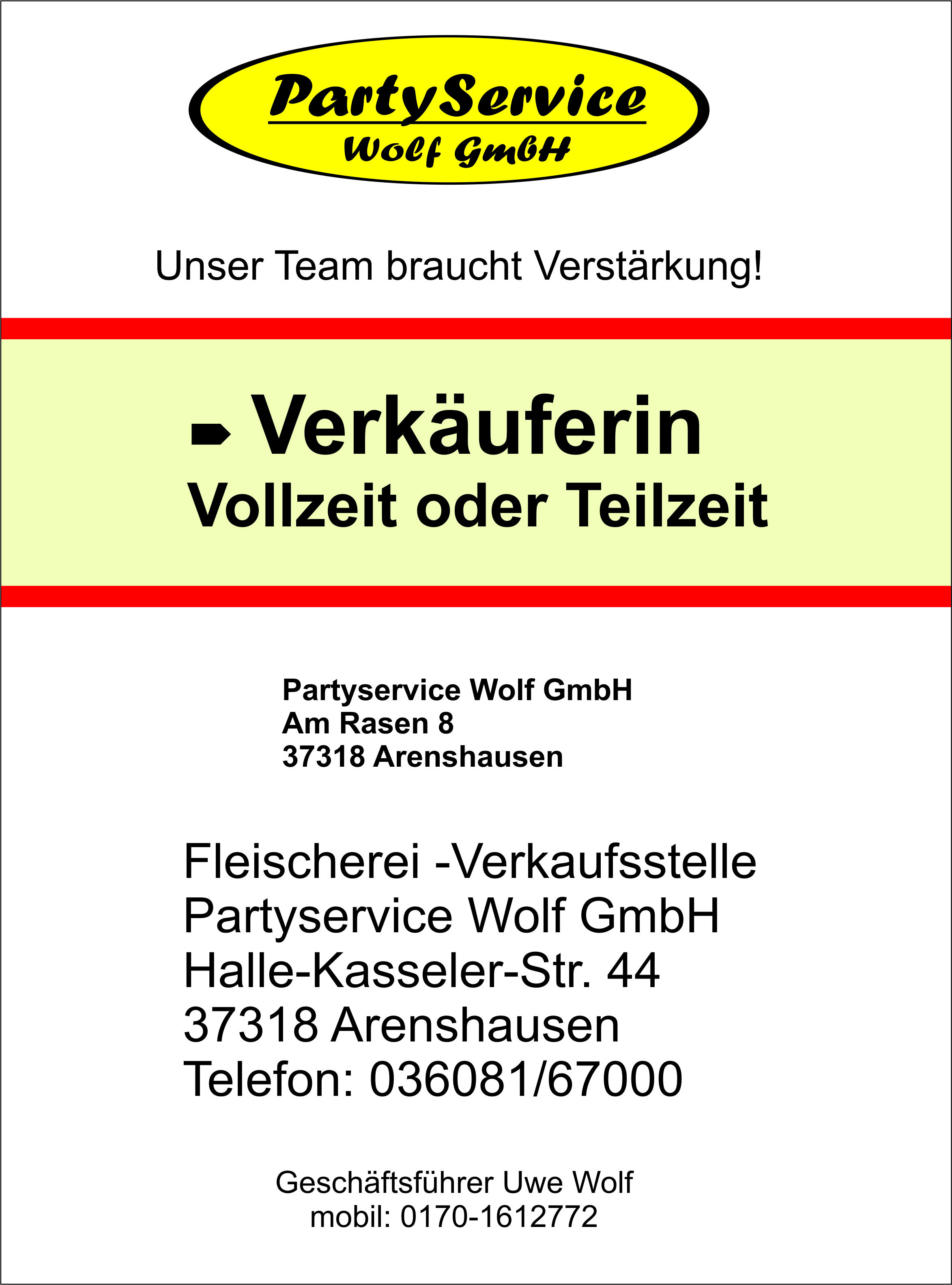 Die Partyservice Wolf GmbH bietet in Ihrer Verkaufsstelle Eichsfelder Spezialitäten an.
